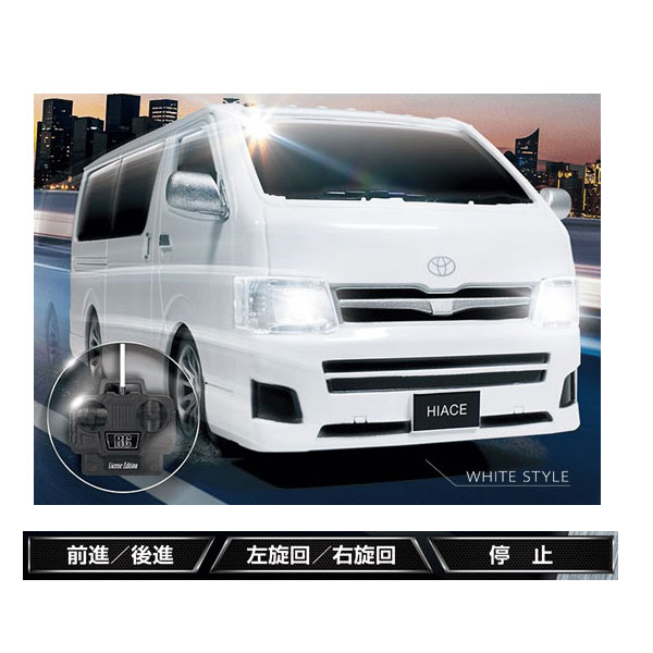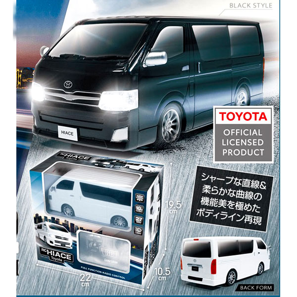 トヨタHIACEの洗練されたリアルフォルムを再現。細部までこだわった形状と車体デザイン。フルファンクション機能で前進・後進・左旋回・右旋回・左後進・右後進の操作が可能。ライセンス付きRCラジコンで登場。