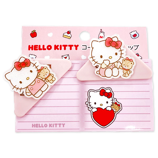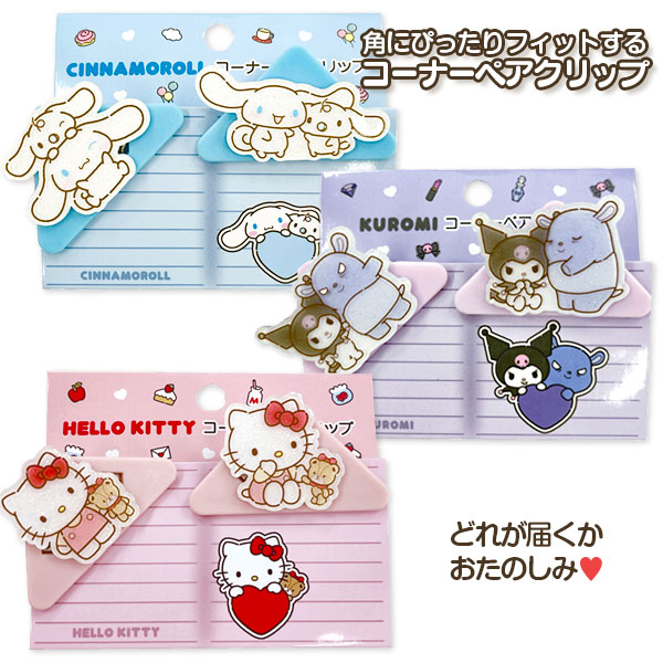 サンリオキャラクターズのコーナーペアクリップ!キラキラと輝くラメ入りデザインがポイント♪紙の角にぴったりフィットする形で、ノートやプリント整理にも便利です。