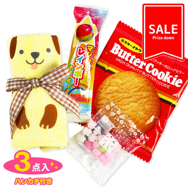 主な仕様:内容量:ハンカチ・お菓子3点 ※セット内容は予告なく変更される場合があります。|重量:約36.8g|※複数ご注文いただいた場合、賞味期限が全て同じ日付の物でお届けできない場合がございます。|※原材料・アレルギー表示は変更する場合がございます。