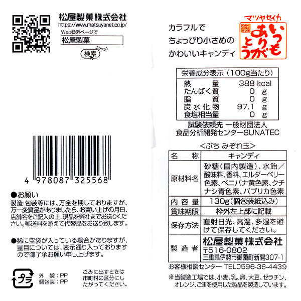 主な仕様:内容量:約27g(約8個)|内容:キャンディ・ラムネ・クッキー|賞味期限:製造日より9ヶ月|原産国:日本|※賞味期限は商品到着日より1ヶ月以上ある商品を出荷しています。(催事商品及び一部地域を除く)|※複数ご注文いただいた場合、賞味期限が全て同じ日付の物でお届けできない場合がございます。|※原材料・アレルギー表示は変更する場合がございます。