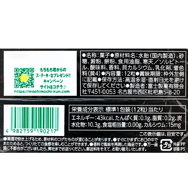 駄菓子の定番☆つまようじで刺して食べる四角くてかわいらしい餅飴(もちあめ)駄菓子「もちもち君」です♪南国気分を楽しめる、爽やかなパイン味です。
